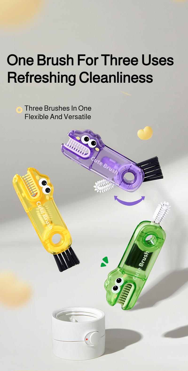 Three in one foldable cartoon cup brush