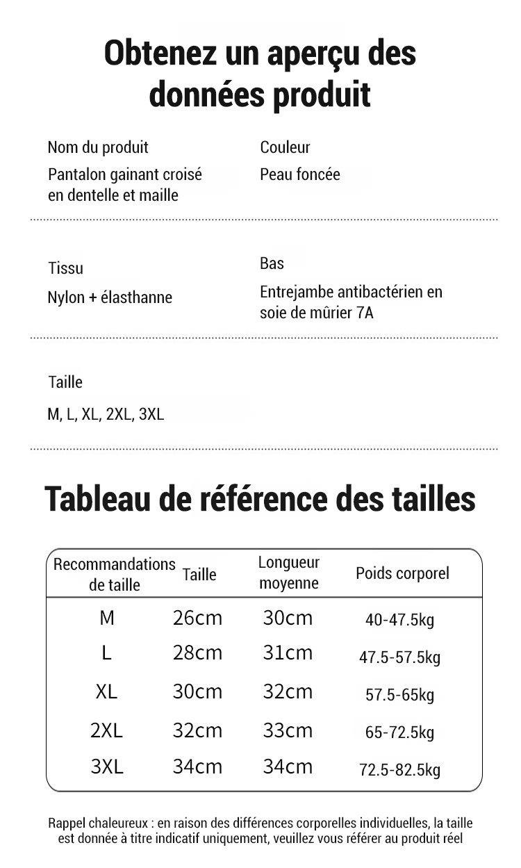 Conçu avec l'Institut de Haute Couture de Paris, utilisant une coupe professionnelle, il aplatit instantanément le ventre et donne l'apparence de perdre 5 kg.