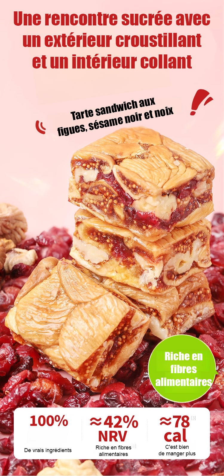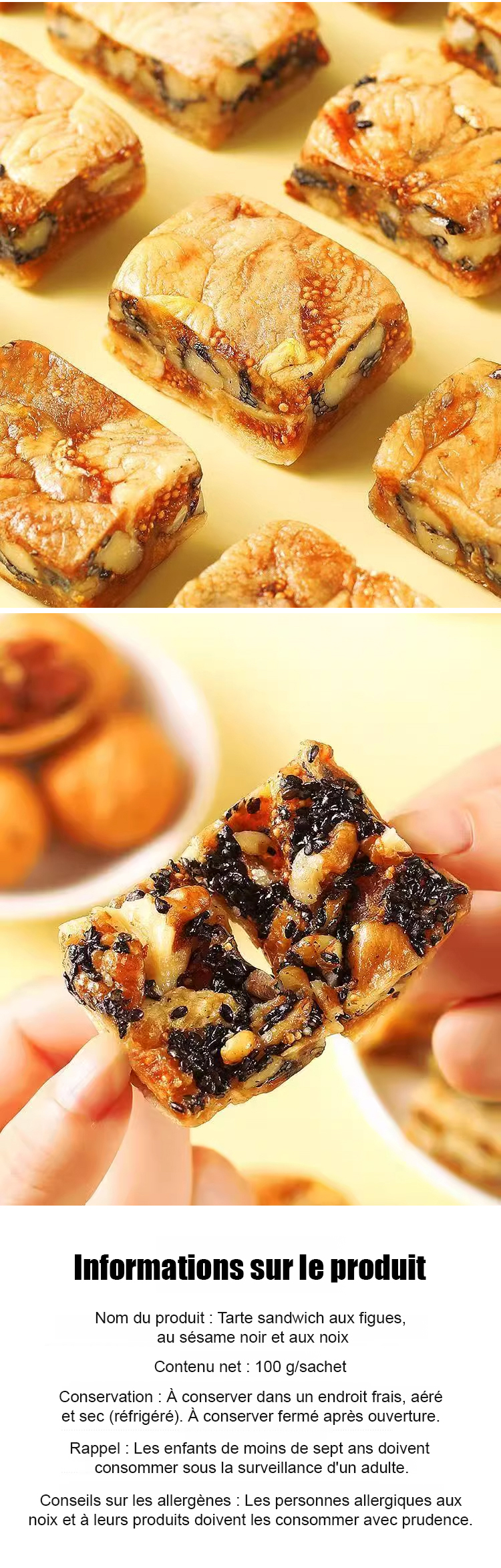 【Recommandé pour une consommation quotidienne par des experts en santé】Tarte aux figues, sésame noir et noix