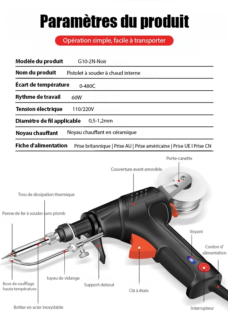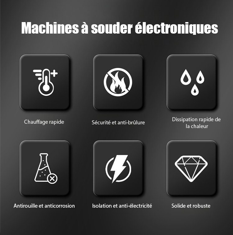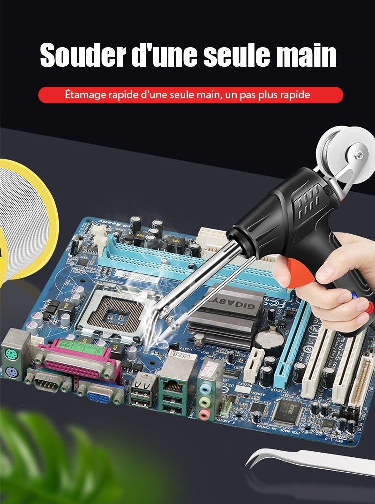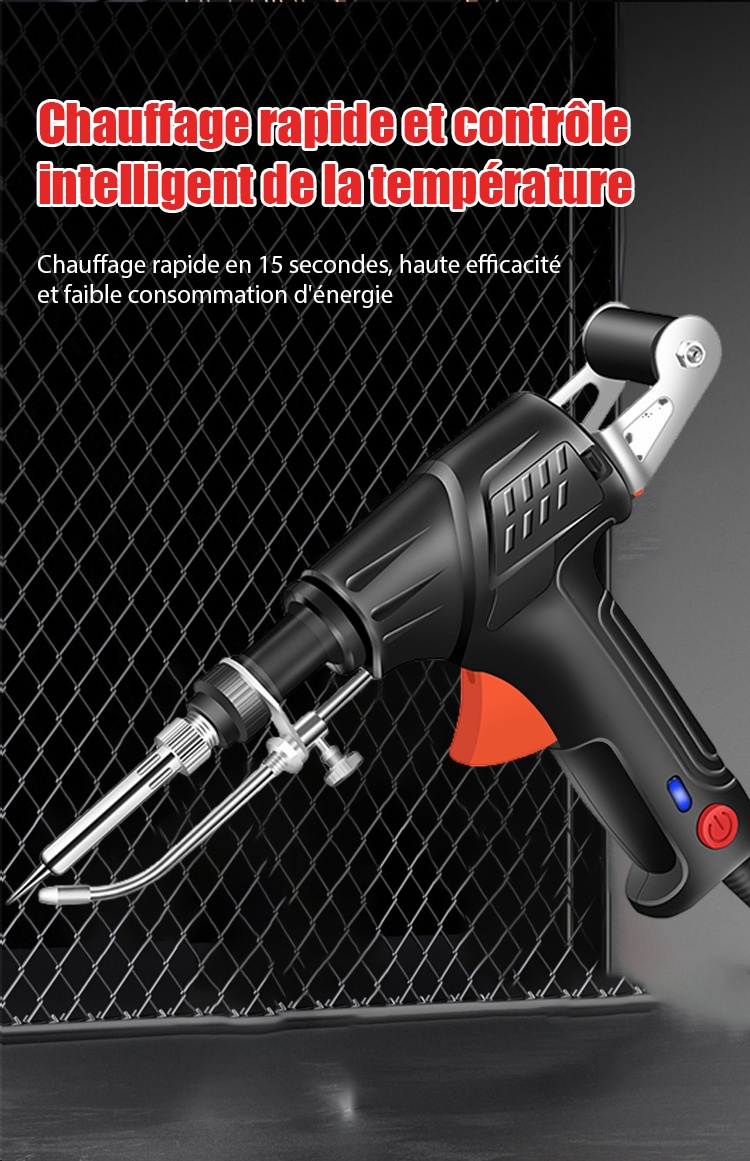 Chauffe en 3 secondes, peut souder des métaux comme l'argent, le cuivre, le fer et l'aluminium. Les soudures sont esthétiques et solides, sans besoin de ponçage.