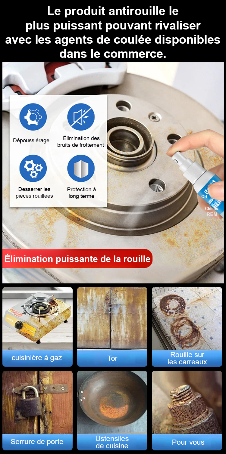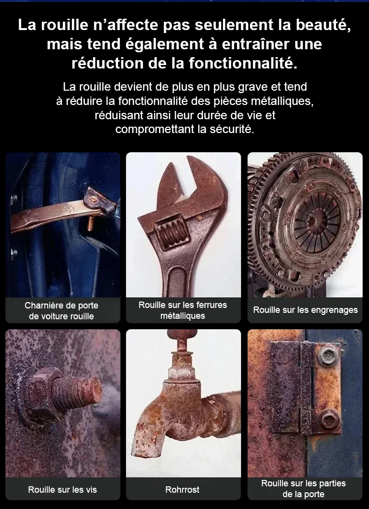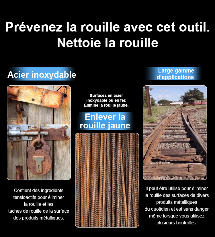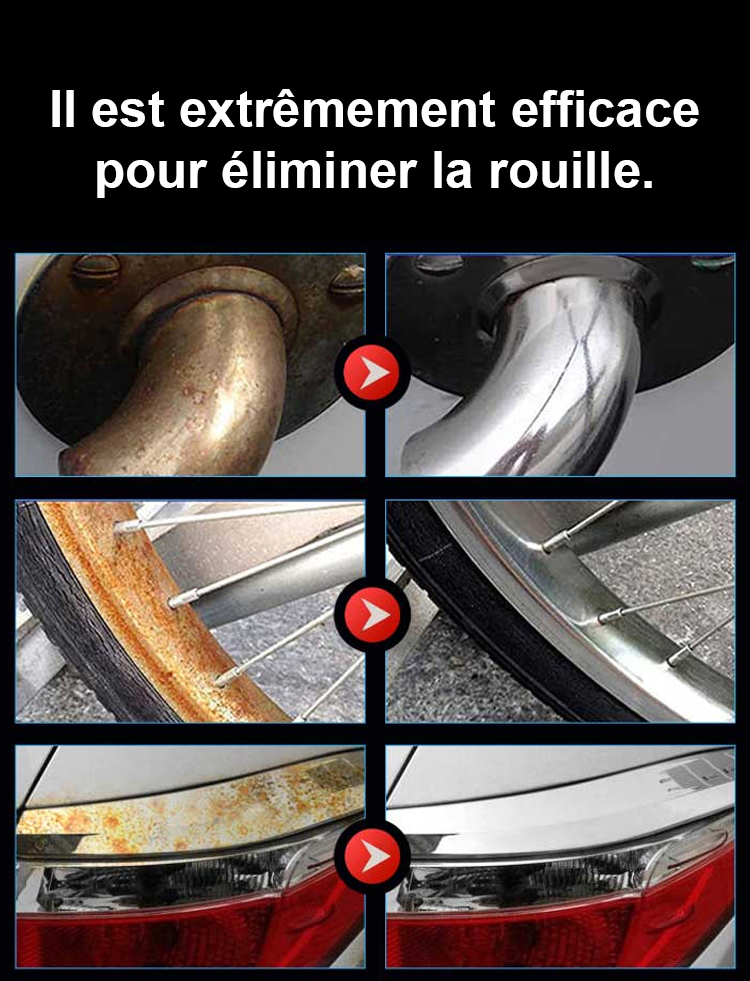 Élimine la rouille en 3 secondes, adapté aux voitures, tuyaux et autres objets en fer.