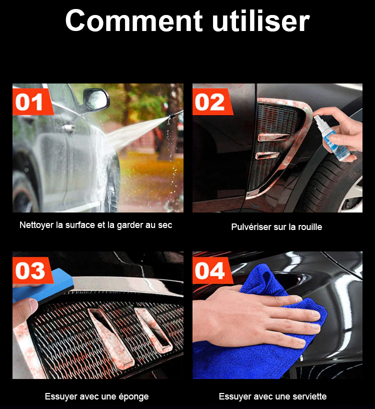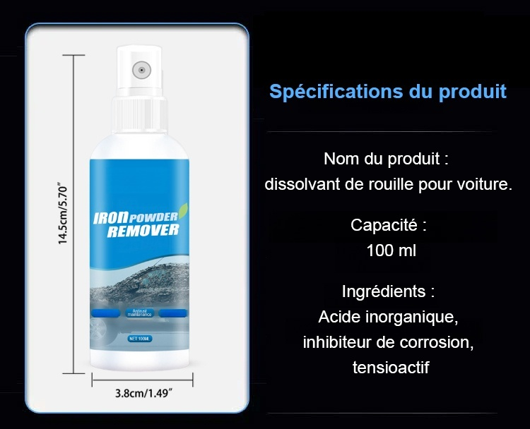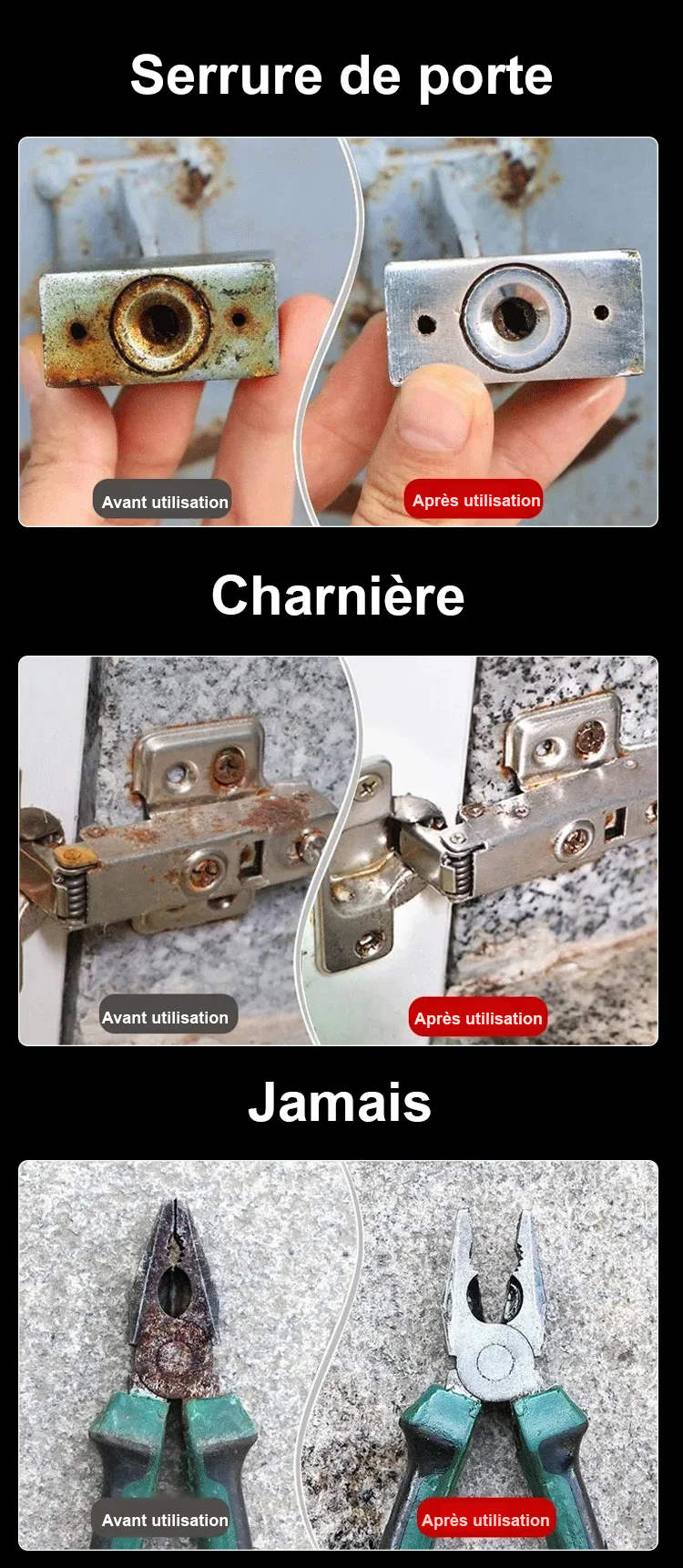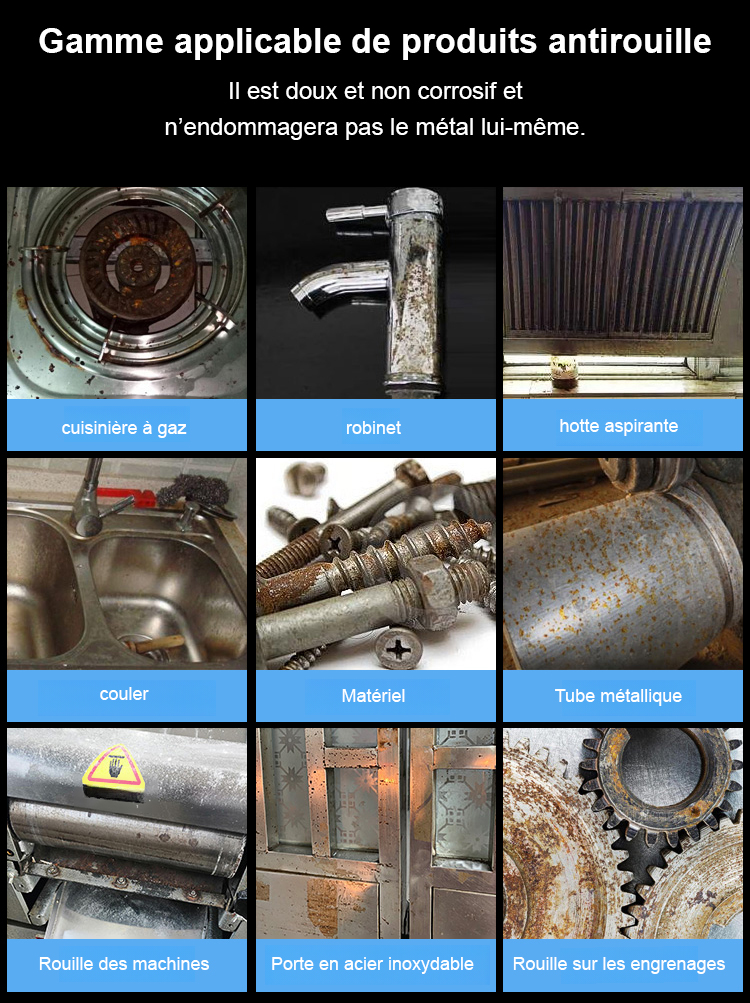 Élimine la rouille en 3 secondes, adapté aux voitures, tuyaux et autres objets en fer.
