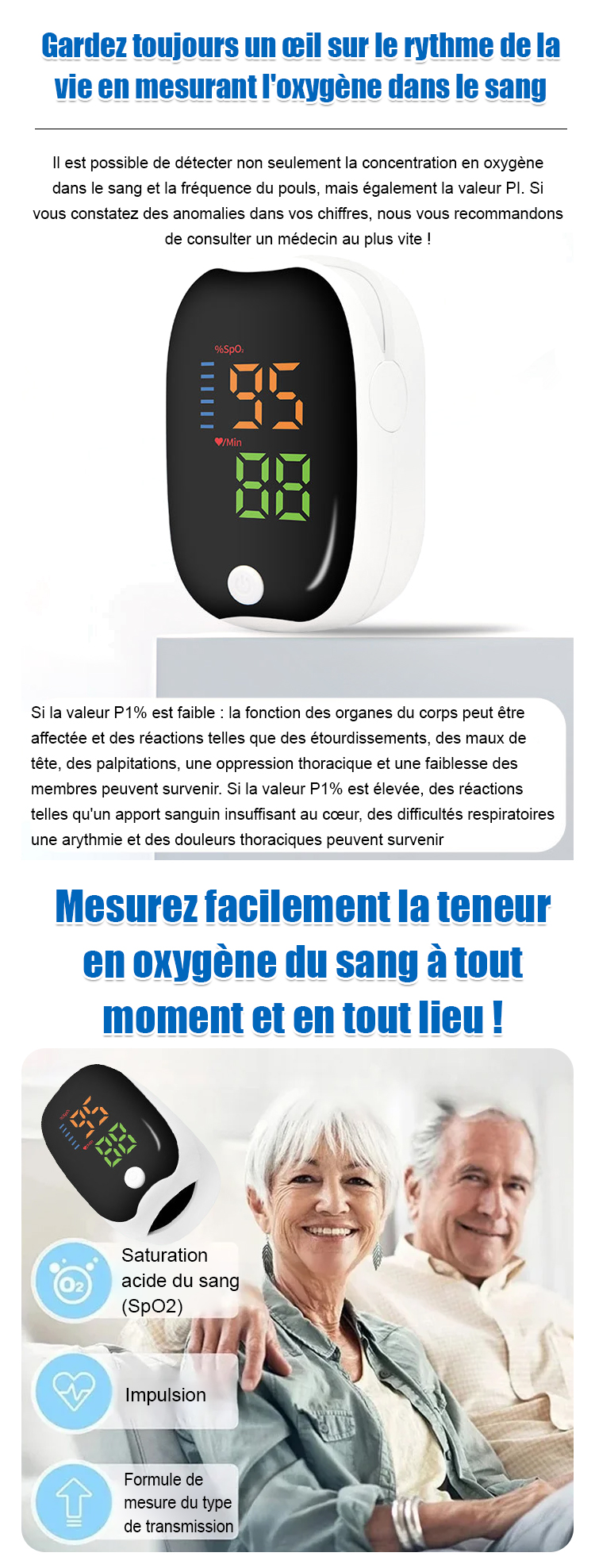 【Développé par un hôpital de pointe】Oxymètre de pouls à pince